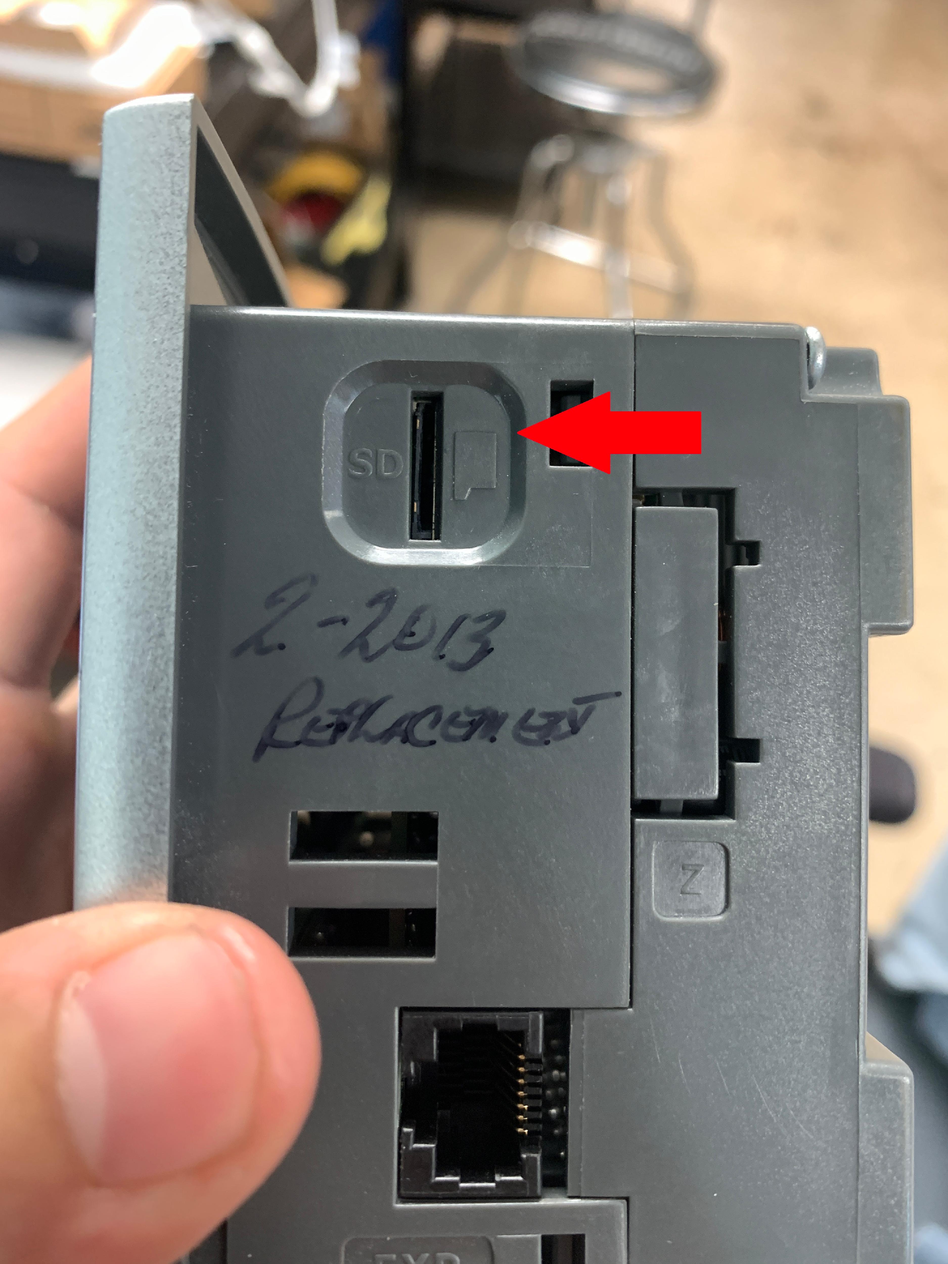 Once the update process is complete, take the SD card out from the PLC (press the SD card in) and ship the card back to the PLCBridge office.